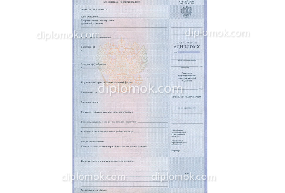 - Комплект: Диплом + приложение + обложка